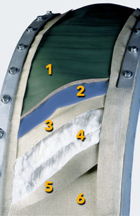 La tela de fibra de vidrio recubierta de vermiculita actúa como aislante y aumenta la resistencia y durabilidad de las juntas de expansión. También se pueden agregar capas de malla de alambre para aumentar durabilidad y resistencia a la abrasión.