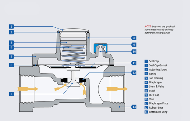 Los reguladores de la serie RV están diseñados principalmente para aplicaciones de quemador principal y carga piloto. Gases combustibles: Aptos para gases naturales, manufacturados, mixtos, gases licuados de petróleo, mezclas de gas LP y aire, y gases de las familias de gases 1, 2 y 3 según la norma DIN EN 437. Entre sus aplicaciones típicas se incluyen electrodomésticos de cocina residenciales y comerciales, productos para chimeneas y líneas piloto. Tienen una capacidad nominal de hasta 1/2 psi (3,4 kPa). Certificaciones: ANSI Z21.18/CSA 6.3 Gas Appliance Pressure Regulators. Modelos disponibles: RV 47; RV 48 |